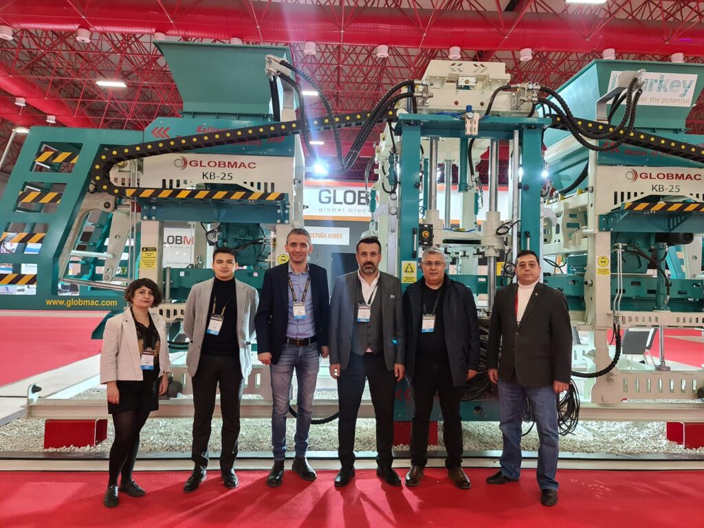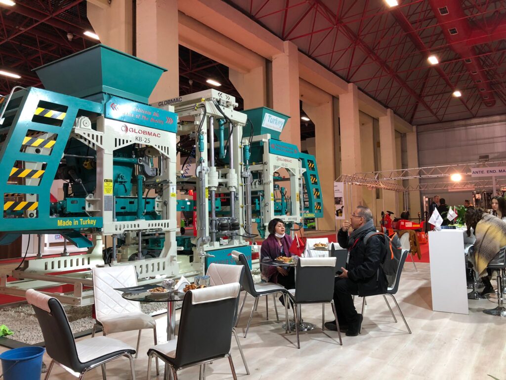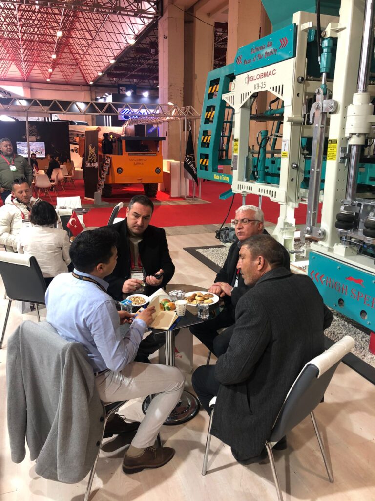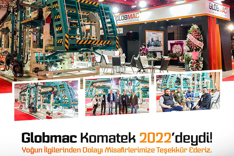 استقبلت عائلة GLOBMAC ضيوفها في معرض كوماتيك وقامت بعرض ماكينتها لهم من طراز كي بي. تم تقديم معلومات حول مراحل انتاج الانترلوك الاسمنتي (حجر الارصفة او البلاط الاسمنتي) والبلك الاسمنتي (الطوب او الطابوق) باستخدام ماكيناتنا كي بي 25 ، إلى جانب تقديم معلومات حول مختلف مجالات الإنتاج مثل ماكيناتنا من طراز بارس الخاصة بانتاج البلك الاسمنتي وانظمة العمل مثل الفنغركار.